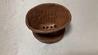 珈琲をたてる時の受け皿壊れてしまったので、土物で作りました。カップに直接乗せれるサイズに。高さがもう少しあってもよかったかなあ。